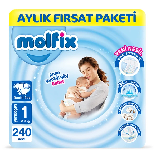 Molfix Bebek Bezi 1 Beden Yenidoğan Aylık Fırsat Paketi 240 Adet