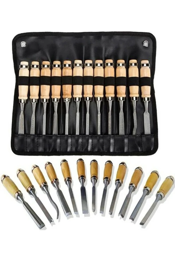 Moonshop Iskarpela 12 Parça Çantalı Ahşap Oyma Seti