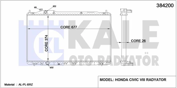 Honda Motor Su Radyatoru Honda CIVIC Sedan 2006 2012 Manuel Vites (375x677x16) - Kale 384200
