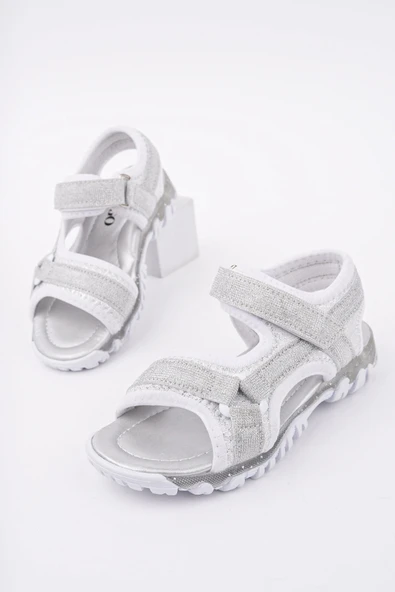 Muggo ELON Cırtlı ve Simli Günlük Kız Çocuk Sandalet GÜMÜŞ 29