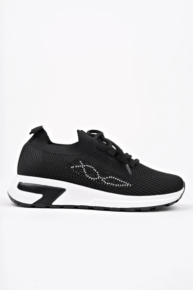 Muggo MARTHA Kadın Kalın Taban Günlük Triko Taşlı Bağcıklı Sneaker Spor Ayakkabı SİYAH 36