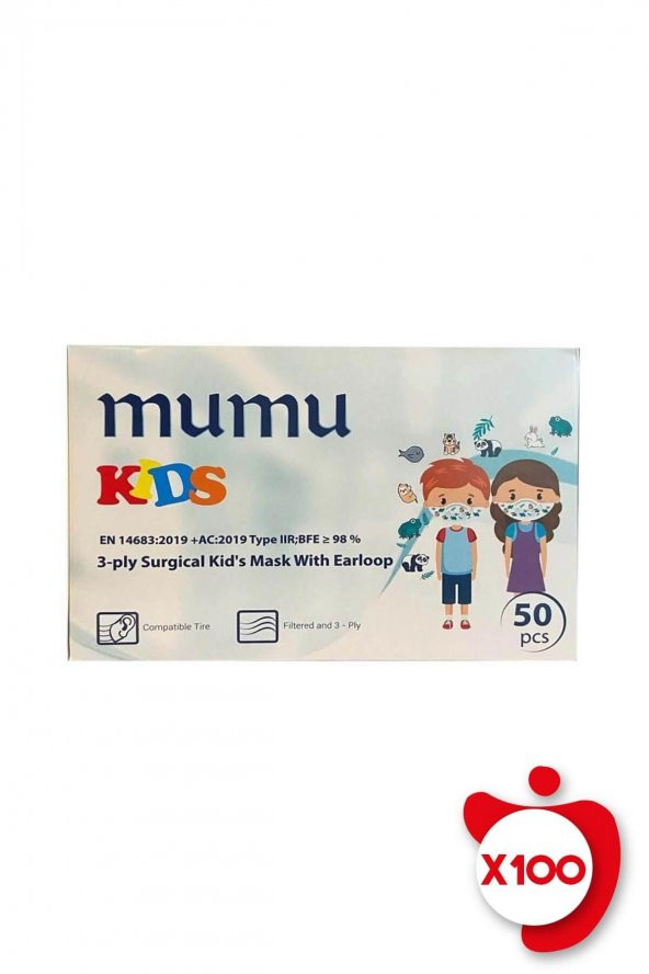 Mumu 3-PLY Surgical Kids Mask With Earloop 50li 100 Paket