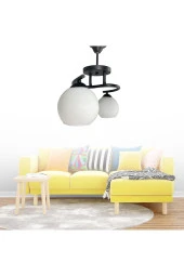 Mutu Ticaret Fuji Siyah 2'li Beyaz Camlı Avize | Kaliteli Modern Metal Avize