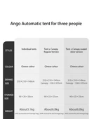 Naturehike Ango UPF 50+ Gölgelikli Otomatik Kurulum Kamp Çadırı 3 Kişilik Ekstra Gölgelikli / Gümüş
