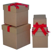 - Naturel Kraft Straw Kare Hediye Kutusu Seti 4lü