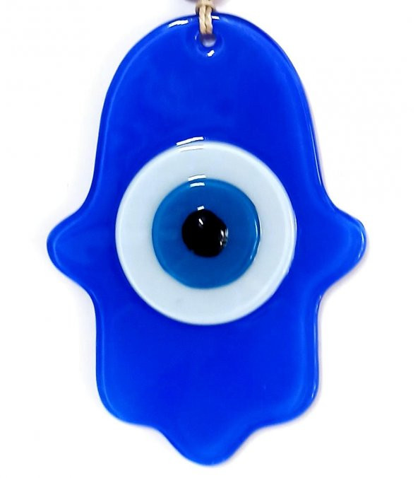 Nazar Boncuklu Mavi Renk Fatma Ana Bereket Eli Cam Duvar Süsü