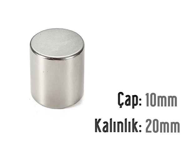 Neodyum Mıknatıs Silindir Çap 10mm , Kalınlık 20mm ( 2 Adet)