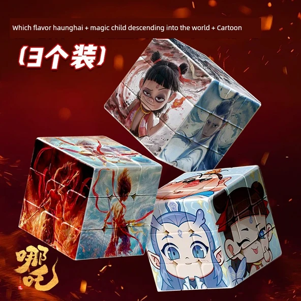 Nezha Büyülü Çocuk Yaratıcı Rubik Küpü - [3 Paket] Şeytan Çocuk Deniz + Şeytan Çocuk Dünyaya İniş + Çizgi Film Şeytan Çocuk