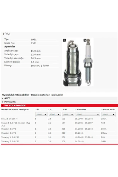 NGK ATESLEME BUJISI ILZKR7A (4LU PAKET) Q7 3.6 PASSAT 3.2 TOUAREG 3.6 PHAETON 3.6 CAYENNE 3.6
