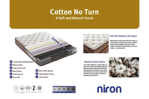 Niron Cotton No Turn 90x190 cm Tek Kişilik Yatak Baza Başlık Takımı - Baza, Başlık ve Yatak Seti
