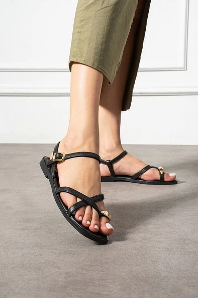 Nordi Siyah Cilt Kemerli SandaletNumara