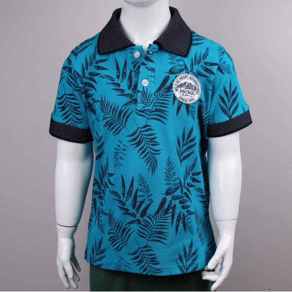 North Star Fashion Polo Yaka Baskılı Nakışlı Erkek Çocuk T-Shirt Petrol Yeşili