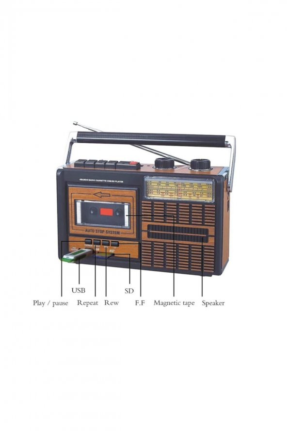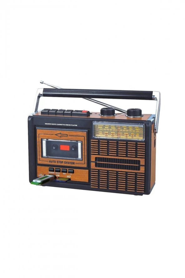 Nostaljik Müzik Kutusu Radyo Şarjlı Bluetooth Usb Sd Mp3 Kaset Koyma Özelikli