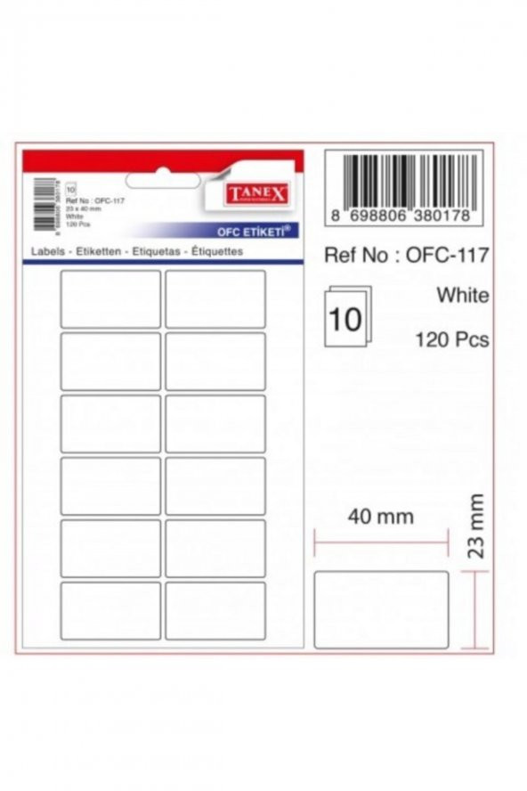Ofc-117 10 Adet Beyaz Ofis Etiketi