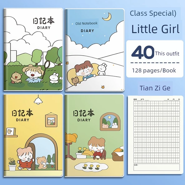 Öğrenci Günlüğü Defteri A5 - Kare Izgara - [Sınıf Özel] 40 Paket Küçük Kızlar/Tian Zi Ge