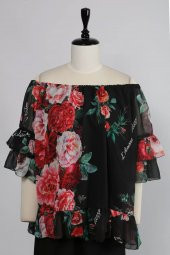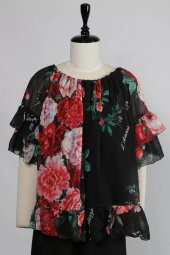 Omuz Lastikli Şifon Bluz 1769-Siyah/KırmızıRenk