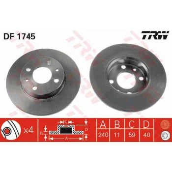 Tofas On Fren Diski Fiat 500 500c 07> Tempra Tipo Punto Panda Marea Bravo 96> Alfa Romeo 145 146 155 92> F - Trw Df1745