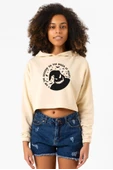 Oogie Boogie Bej Kadın Crop Kapşonlu