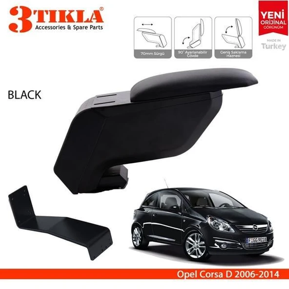 Opel Corsa D 2006-2014 Delmesiz Çelik Ayaklı Siyah Kolçak Kol Dayama