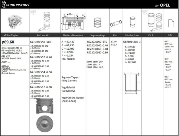Opel Motor Piston+segmanı (riken) Astra J Corsa D Grande Punto1.3cdtı 16v Linea Grande Punto 199a3000 Mul - Kingpiston 18-3082552