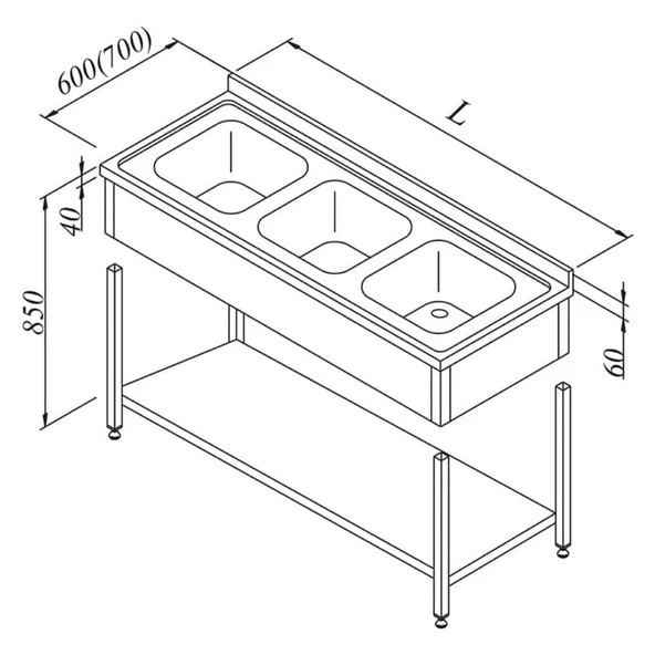 Öztiryakiler Evyeli Tezgahı 3g 3 Perdeli Taban Raflı Demonte 190x70 Cm