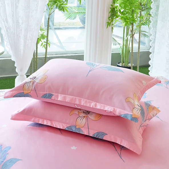 Pamuk Yastık Kılıfı 48x74 cm - Koyu Pembe (Güzel Çiçekler Çift)