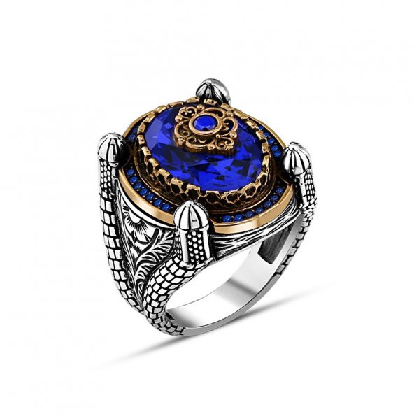 Parlament Mavisi Taşlı Gümüş Erkek Yüzük