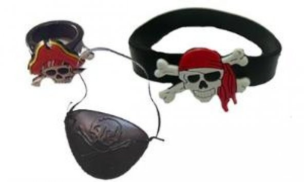 Parti Plastik Korsan Yüzük Bileklik ve Göz Bandı-kırmızı model