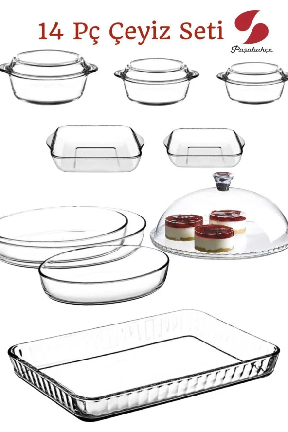 Paşabahçe borcam tencere - frın tepsisi kek fanusu çeyiz seti takımı 14 parça