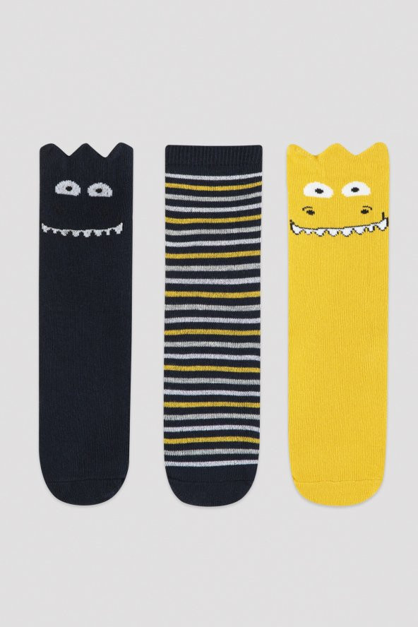 Penti Çok Renkli Boys Crazy Face 3lü Soket Çorap