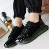 - Piona Siyah Rugan Yeşil Tabanlı Spor Ayakkabı
