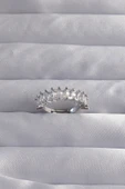 - Pirinç Ayarlamalı Gümüş Renk Baget Taşlı Su Yolu Yüzük - TJ-BYK3286