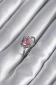 - Pirinç Gümüş Renk Pembe Zirkon Taş Kalp Charm Model Kadın Yüzük