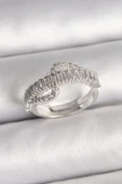 - Pirinç Gümüş Renk Su Yolu Zirkon Taşlı Ayarlanabilir Model Kadın Yüzük