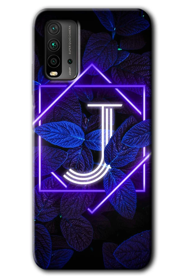 Poco M3 Kılıf HD Desen Baskılı Arka Kapak - Dark Neon Yaprak J Harfi
