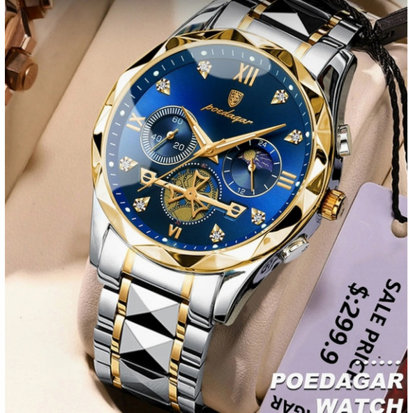 POEDAGAR Erkek Kol Saati Su Geçirmez Paslanmaz Çizilmez Çelik 001