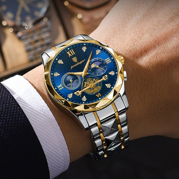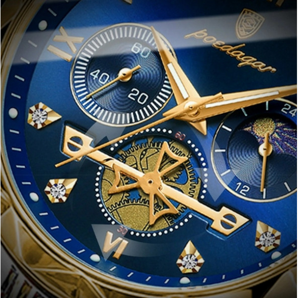 POEDAGAR Erkek Kol Saati Su Geçirmez Paslanmaz Çizilmez Çelik 005