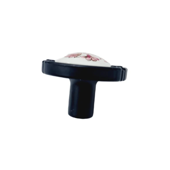 PORSELEN DÜĞME KULP METAL SİYAH BEYAZ MOTİFLİ / 5 ADET