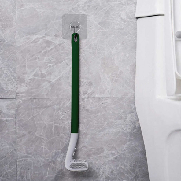 Porsima 1445 Yeşil Golf Tasarımlı Silikon Banyo Tuvalet Klozet Temizleme Fırçası Ve Tutucu Set