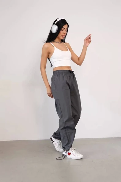 Praşut Kumaş Paça Cepli Baggy Eşofman - Antrasit