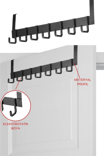 Pratik ve Şık 7'li Kancalı Metal Kapı Arkası Askısı - 45 kg Taşıma Kapasitesi