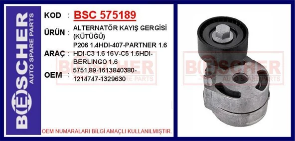 BESCHER markası Psa Alternator Gergi (tek Rulman) Berlingo II C5 II Xsara II Xsara Picasso C3 Fiesta P407 Partner II P20 - Bsc 575189 (BSC 575189 kodlu) 5751.89 1613840380 1214747 1329630 ABA 25405525 OEM kodlarına sahip PSA araçları için uyumlu olan bu ürün parcayuvasi.com'da uygun fiyatlarla, hızlı ve güvenli kargo ile hizmetinizdedir.