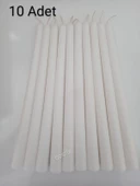 - 10'lu Beyaz Şamdan Soya Mumu 1. Kalite Soya Doğal Vanilya Kokulu Uzun Çubuk Konik Mum Dekoratif