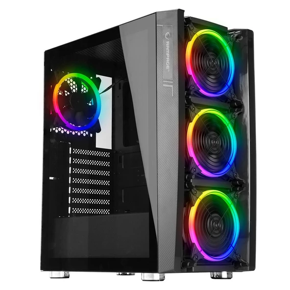 Rampage HACKER Temper Camlı PSU YOK Siyah 4 RGB Fan & Control Gaming Oyuncu Kasası