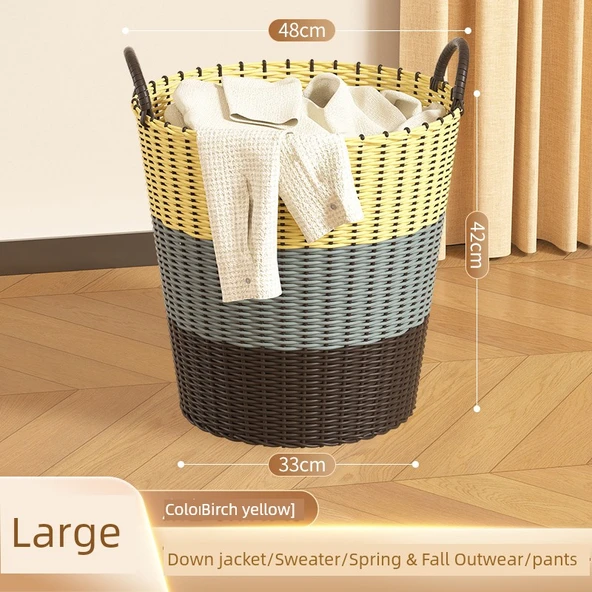 Rattan Çamaşır Sepeti Büyük Boy 42cm - Huş Sarısı (3 Kişilik)