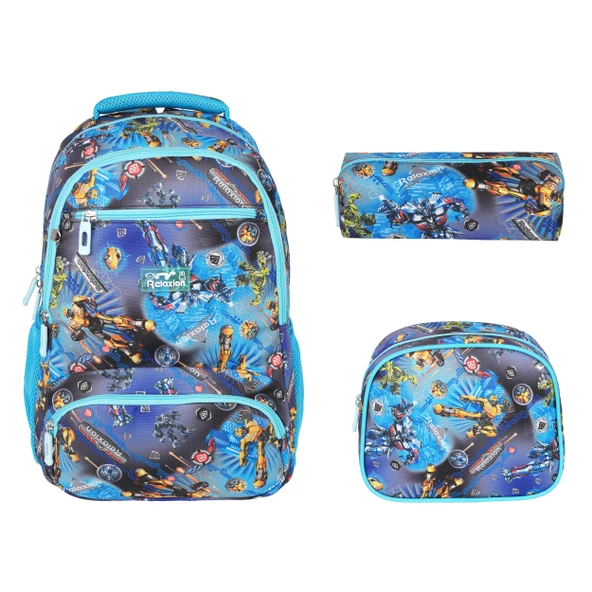 Relaxion Mavi Transformers Desenli Üçlü Okul Seti 8650