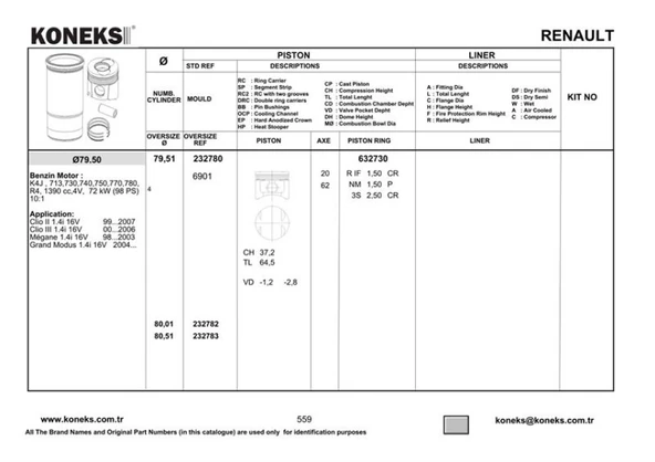 Renault Piston Segman 79,51mm Std Megane 1.4 CC 16v (k4j) - Koneks 232780