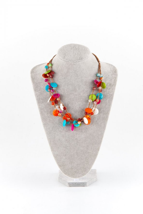 Renkli Pul Sedef Katlı Etnik Kolye