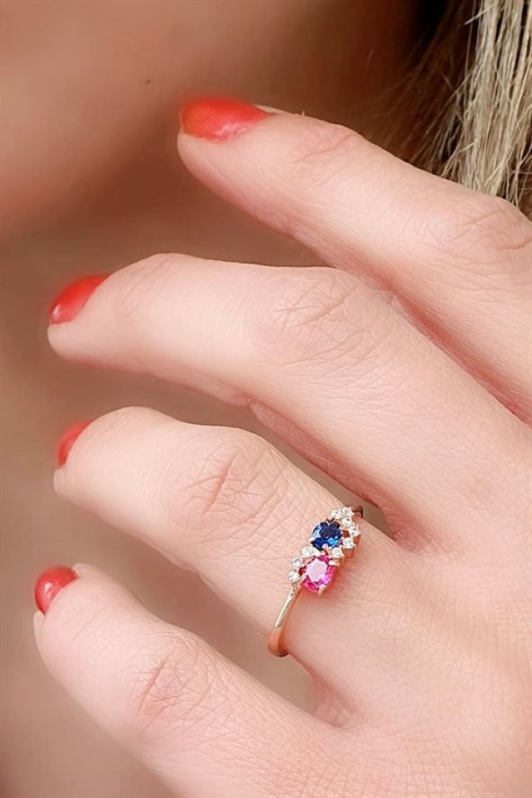 Renkli Zirkon Taşlı 925 Ayar Gümüş Rose Çıtır Yüzük