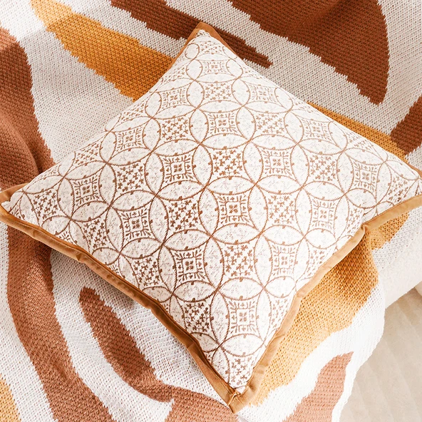 Yastık Kılıfı + İç Dolgu - Kahverengi Kenarlı Kahverengi Zenginlik Desenli Kare 45x45cm